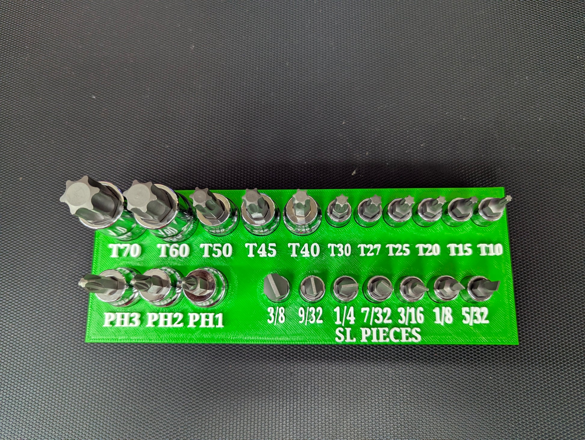 This bit organizer tray set is designed to organize the bit subsection of the QUINN 428-Piece Master Technician Tool Set.